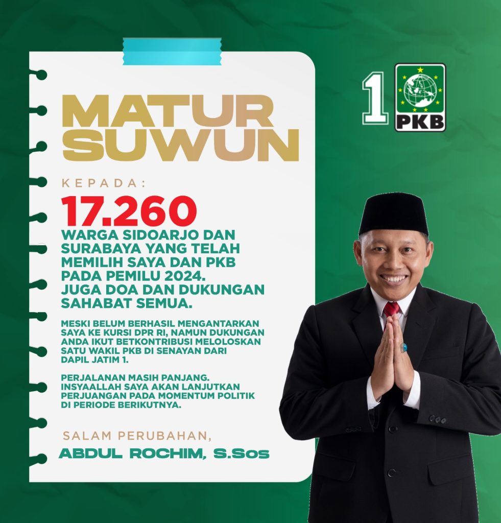 Sebagai caleg pendatang baru, dalam Pileg 2024, saya āberhasilā mendapatkan dukungan dari 17.260 warga Sidoarjo dan Surabaya atau Dapil Jatim 1. Sidoarjo yang saya sebut duluan karena sumbangan suara dari Kota Udang itu lebih banyak, mencapai kisaran 11.300-an suara. Sementara dari Surabaya saya mendapatkan dukungan 5.924 suara. Maklum, konsentrasi kampanye saya memang lebih banyak di Sidoarjo.